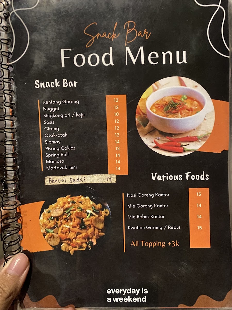 The café isn’t just about coffee; their light snacks are equally tempting. Try the Kentang Goreng Nyemil Wareg or the delectable Rotibakar Pisangbakar, both available for IDR 10,000. These delicious treats enhance your coffee experience and make for a perfect accompanying flavor as you unwind in this snug setting.